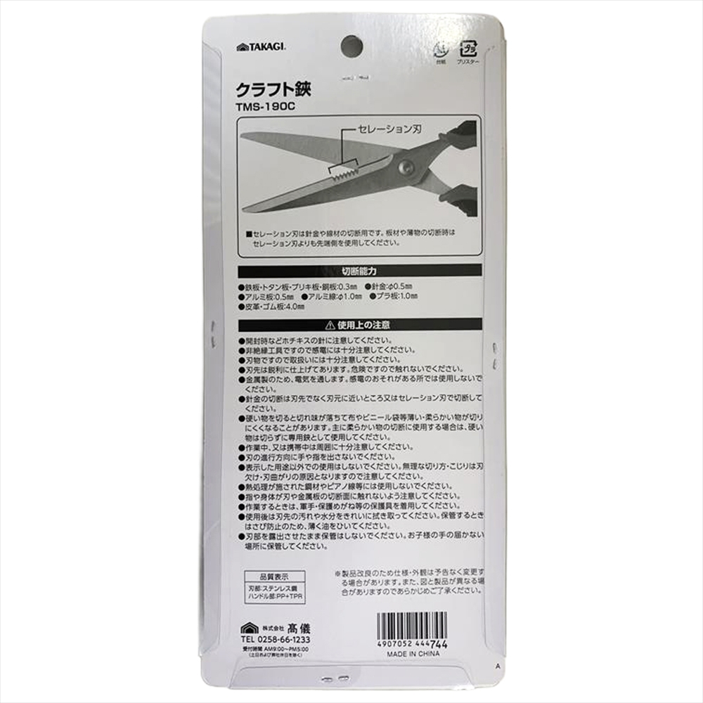 紙やビニールなどから薄い金属板、針金、皮革等まで切ることができる色々な工作に適したはさみです。