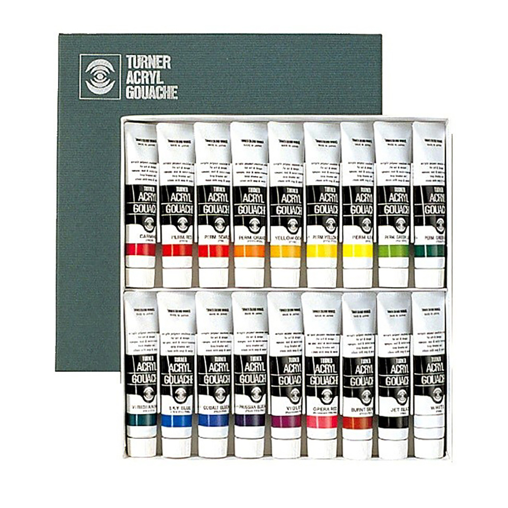 ●色名:ホワイト、ジェットブラック、パーマネントレモン、パーマネントイエローディープ、パーマネントスカーレット、パーマネントレッド、バーントシェナー、パーマネントグリーンライト、パーマネントグリーンミドル、スカイブルー、コバルトブルー(ヒュー)、バイオレット、パーマネントオレンジ、カーマイン、オペラレッド、イエローオーカー、ビリディアン(ヒュー)、プルシアンブルー(ヒュー)