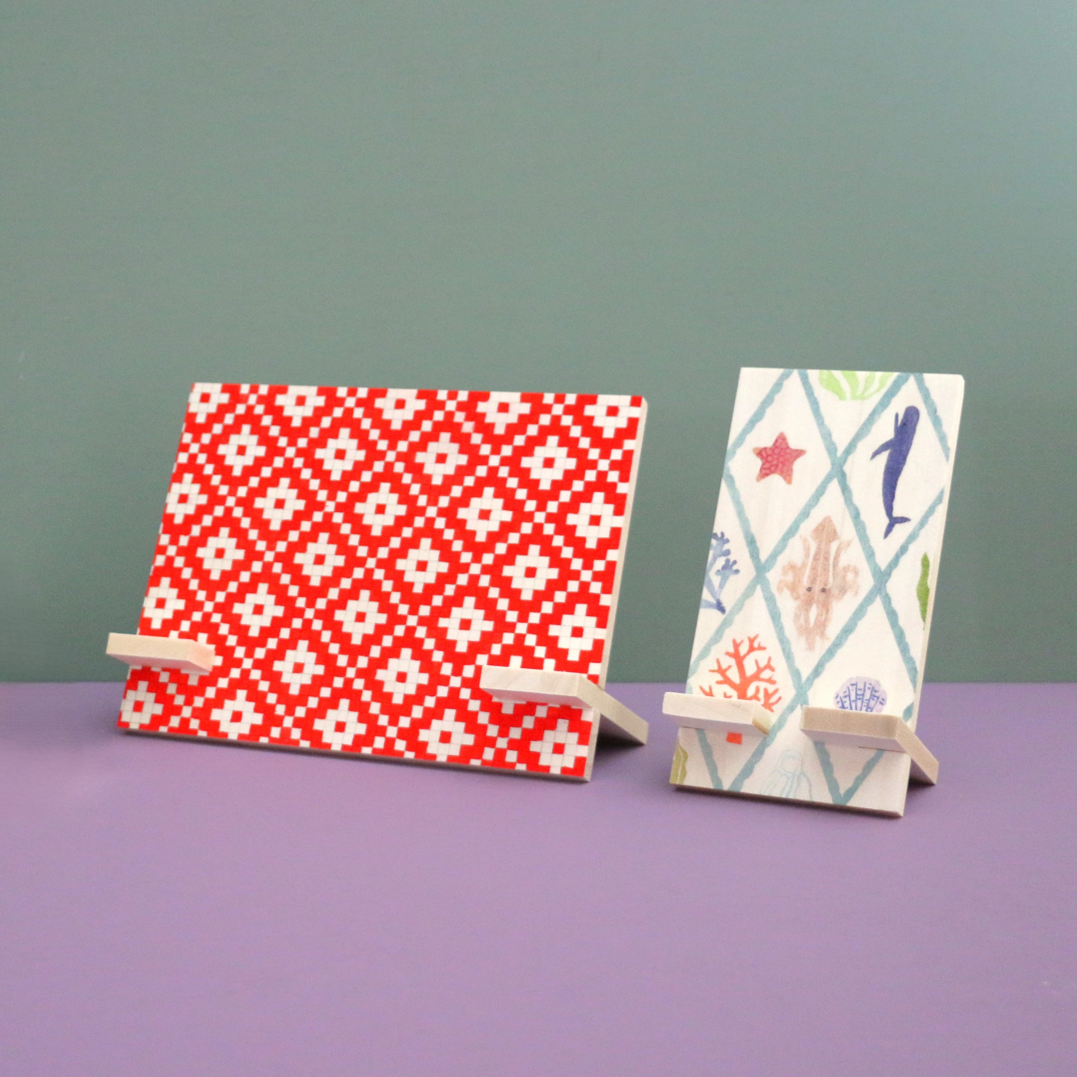 簡単に組み立てられる木製のタブレットスタンドです。