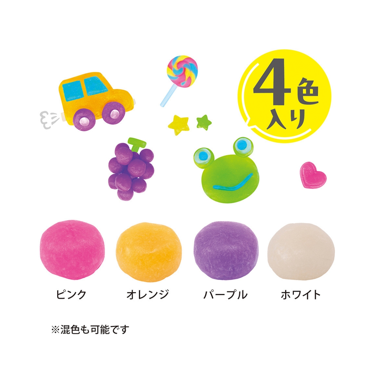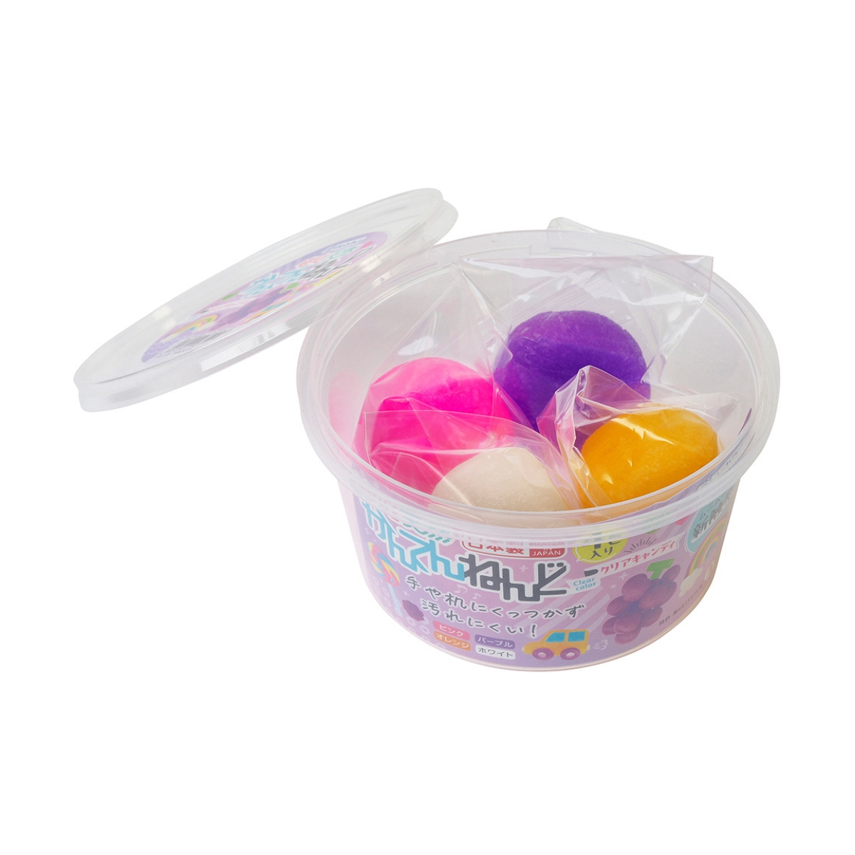 手や机にくっつかず汚れにくい、手でこねるうちに柔らかくなり、よく伸びでやみつきになる触感です。