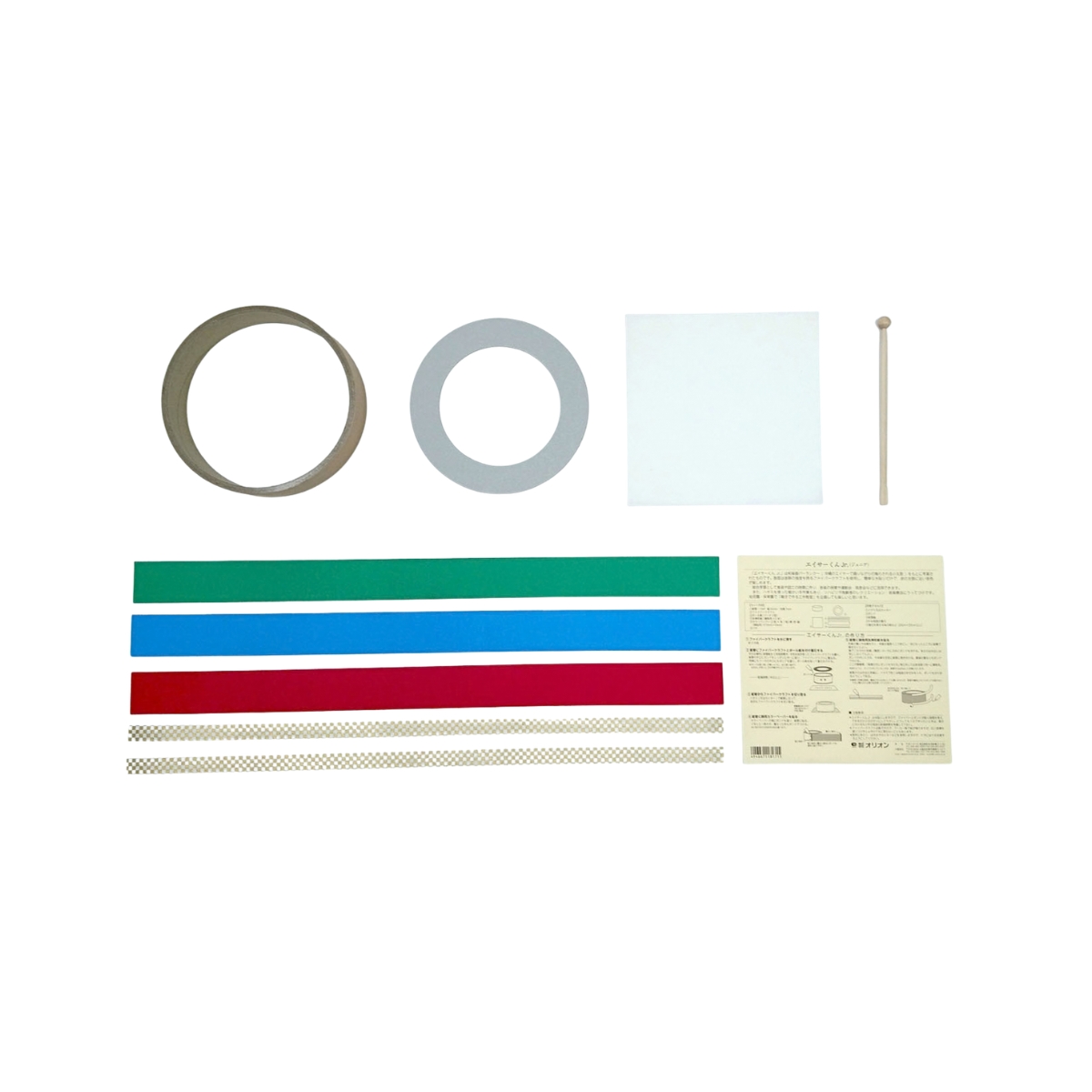 | セット内容 | 紙管(直径約194×幅45×厚さmm)、ミスティックペーパー、ボール紙、友禅和紙(ドーナツ型)、胴貼用カラーペーパー3色各1枚(青・赤・緑/約615mm×44mm)、バチ、説明書付 |