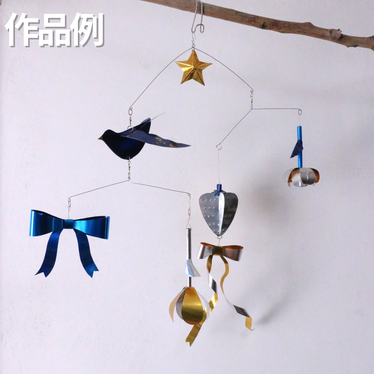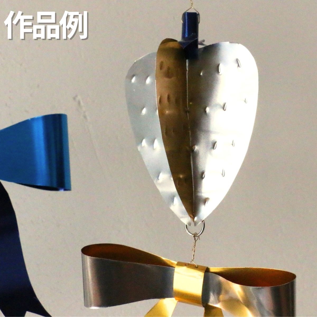 両面色違いのアルミ板で、動きに合わせてメタリックに輝くモビールができます。