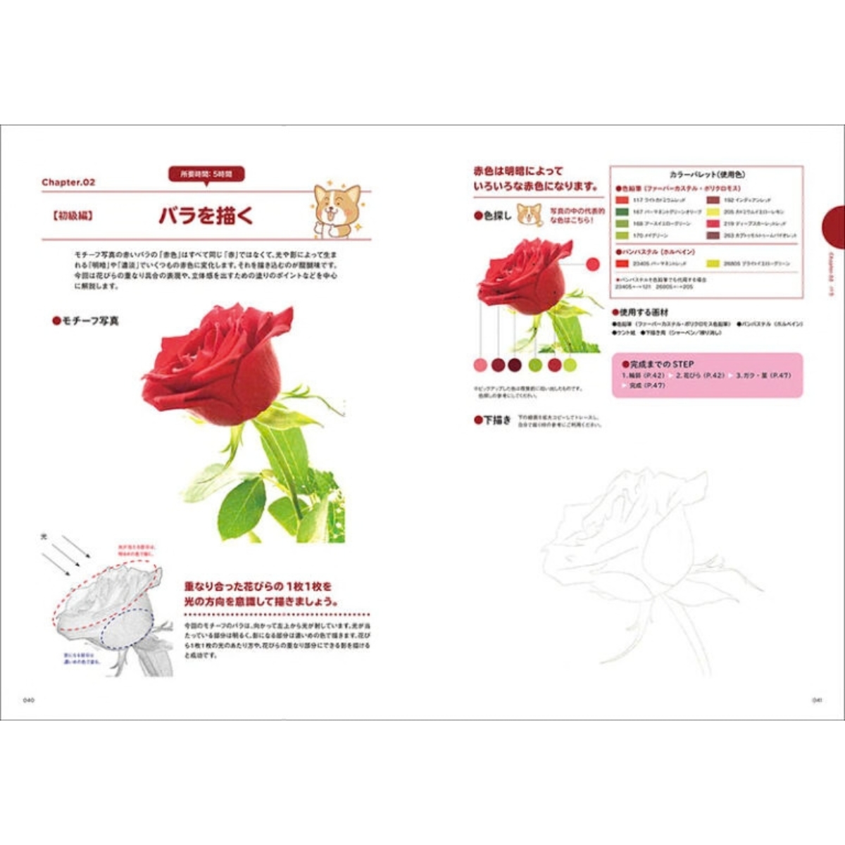 パンパステルを用いた技法や、カッター、消しゴムを用いたテクニックなど、リアルな質感を表現するためのポイントが満載です。