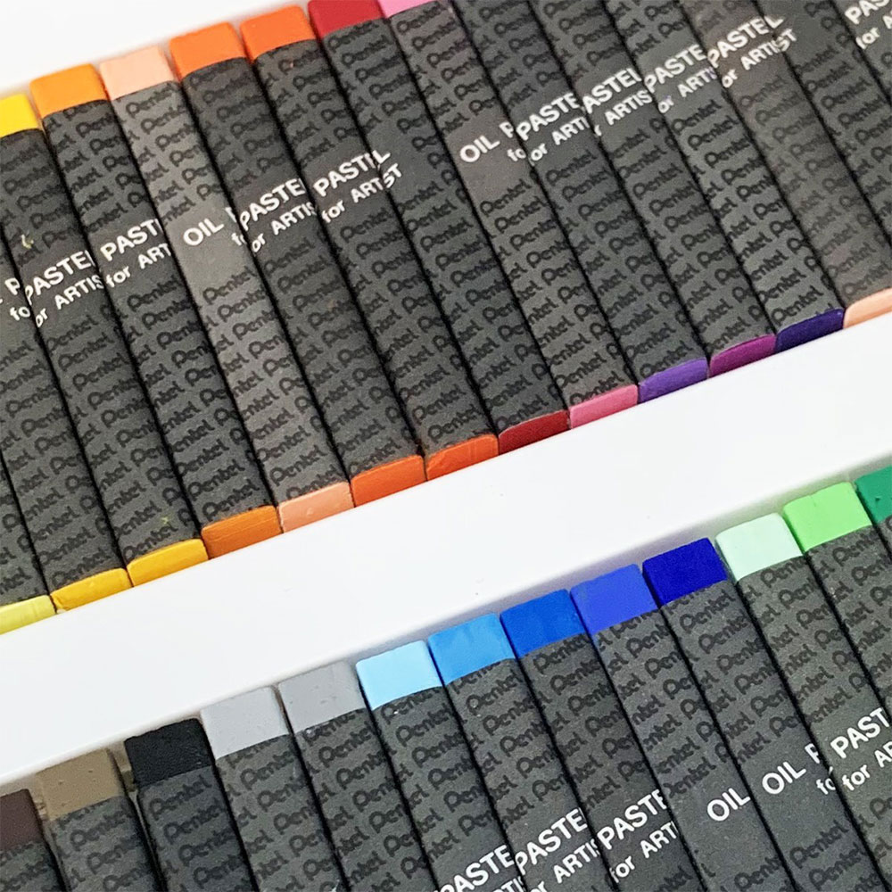 パステルよりも透明度と粘着度が高いため、書き味が滑らかで混色もできます。