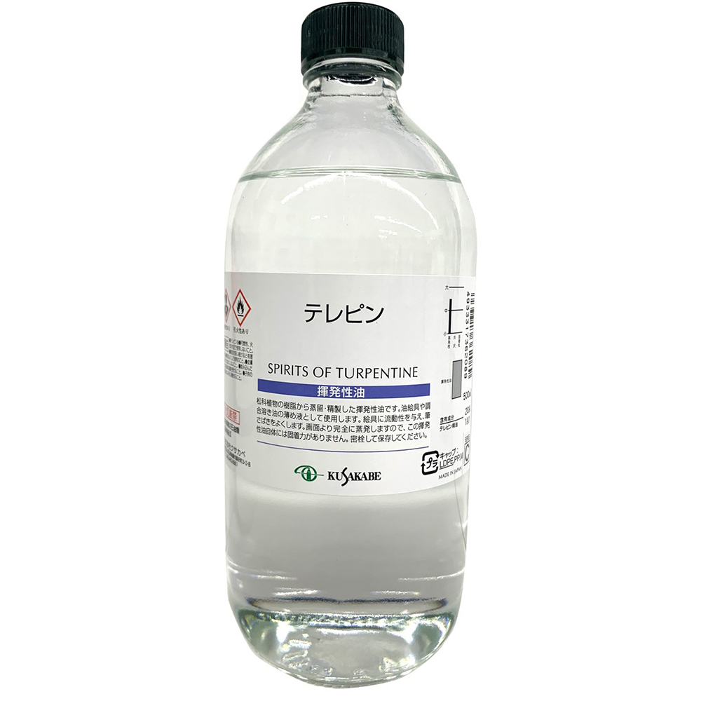 油絵の具 ・ 画用液の薄め液。濃度と流動性(サラサラ感)の調節に使われる。揮発性。